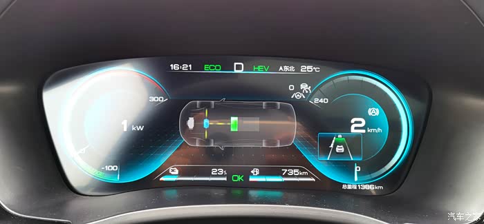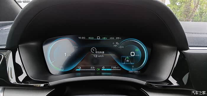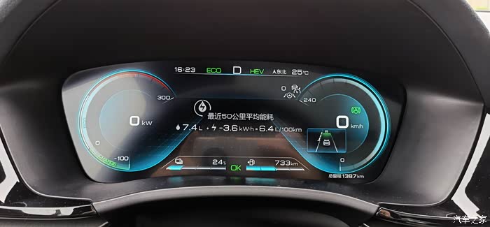 电量到达24%了,基本结束亏电状态,此时表显平均能耗为折算后6.4升/百公里,要知道这是在拥堵情况下电量从18%充到24%的能耗.