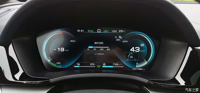 在行车过程中,DM-i系统的充电效率非常高,功率表显示为-19KW,此时看瞬时油耗,差不多6升/百公里左右。