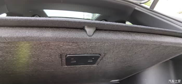 再看看后备厢下隔板,采用了很厚实的隔音棉。另外这个遮物帘上的小钩子设计很巧妙,可固定这块隔板。