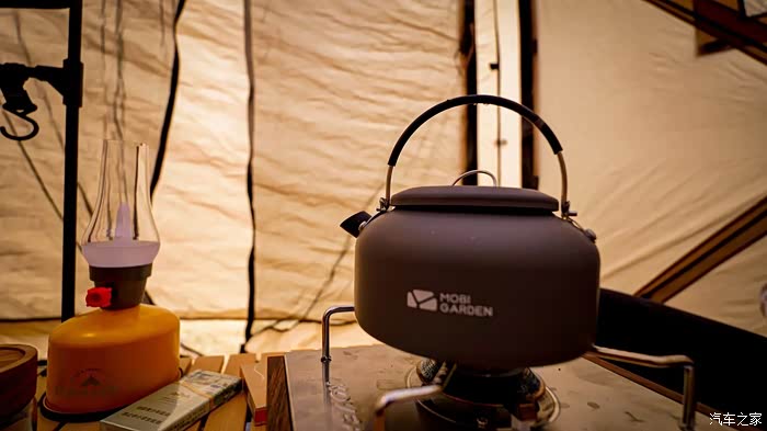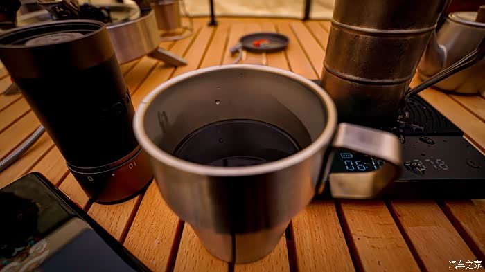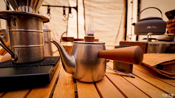 用卡磁炉煮一壶热水沏杯咖啡,暖暖胃
