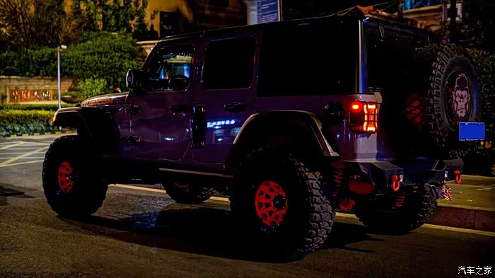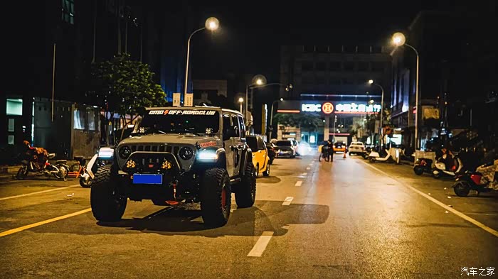 夕阳西下和灰色的牧马人在落日余晖下结束一天的露营生活,趁着夜色,找一处空旷场景给爱车拍几张夜晚的都市大片吧