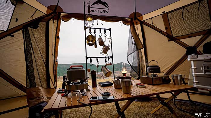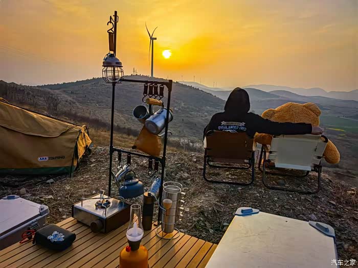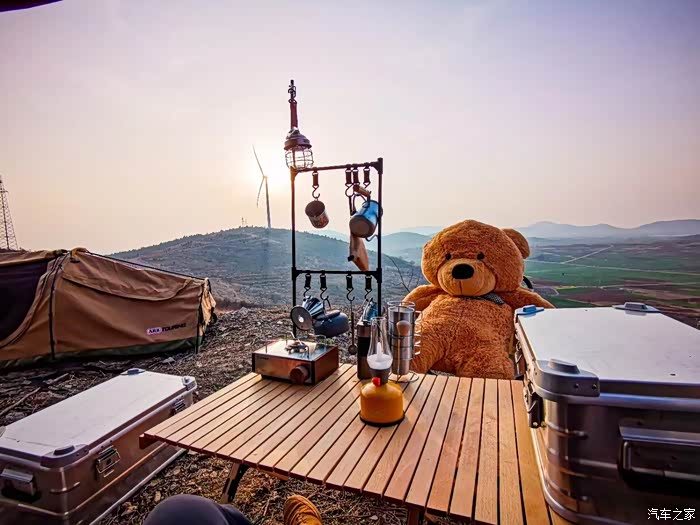 今天的天气,比较一般,天空乌云密布,太阳也没有现身,山顶上阵阵寒风吹来,还是有点冷的,接着我们把露营的一些装备都从车里卸下来