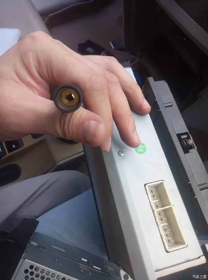 拆CD机的面板时,需要先把烟灰盒抽出来。抽烟灰盒的时候,要抽出来一点,然后用手按着里面的黑铁皮,才能完全抽出来。