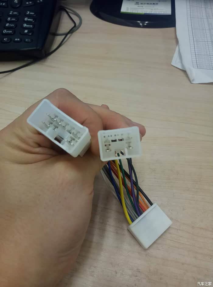 这是卖家的无损连接线与车载线路合体图。已连接上。