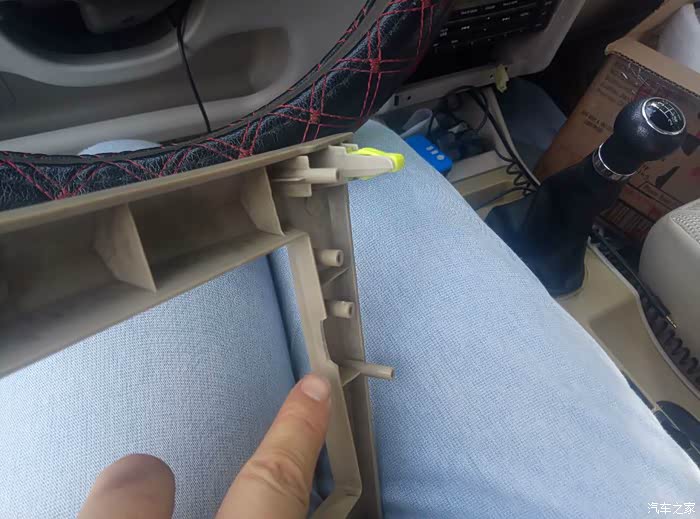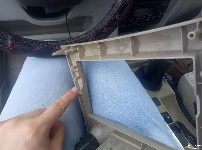 抽出来烟灰盒之后,四周撬起来面板,慢慢的撬出来。均匀用力,撬起来之后,小心点烟器的连接电线。 小心拔下点烟器的线路。