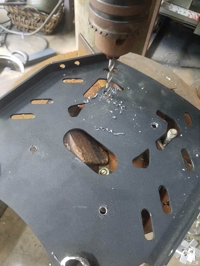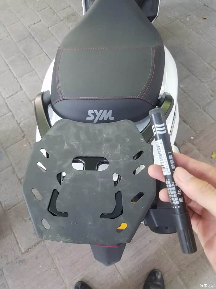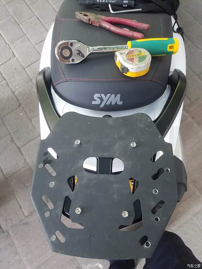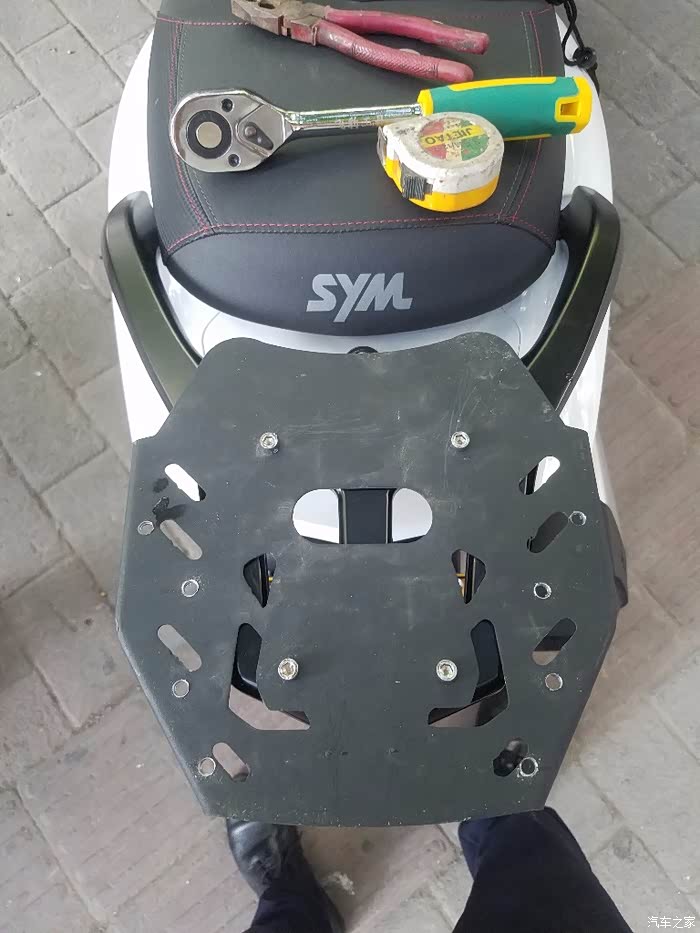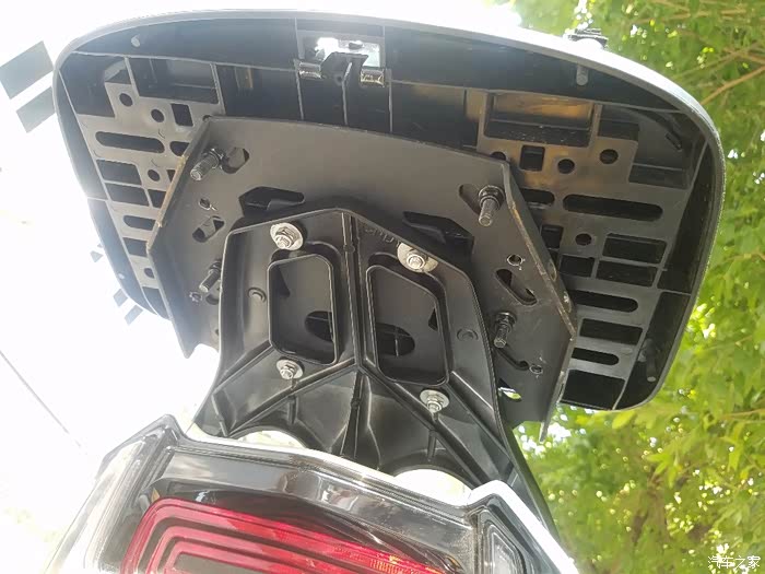 后货架太软(凤凰原装的货架是个塑料的装了尾箱之后才知道坑爹啊,厂家做个铝合金能增加多少成本?),换福禧铝合金货架,把原来的切了 当做底盘,福禧后货架太小装不了39的底座