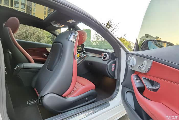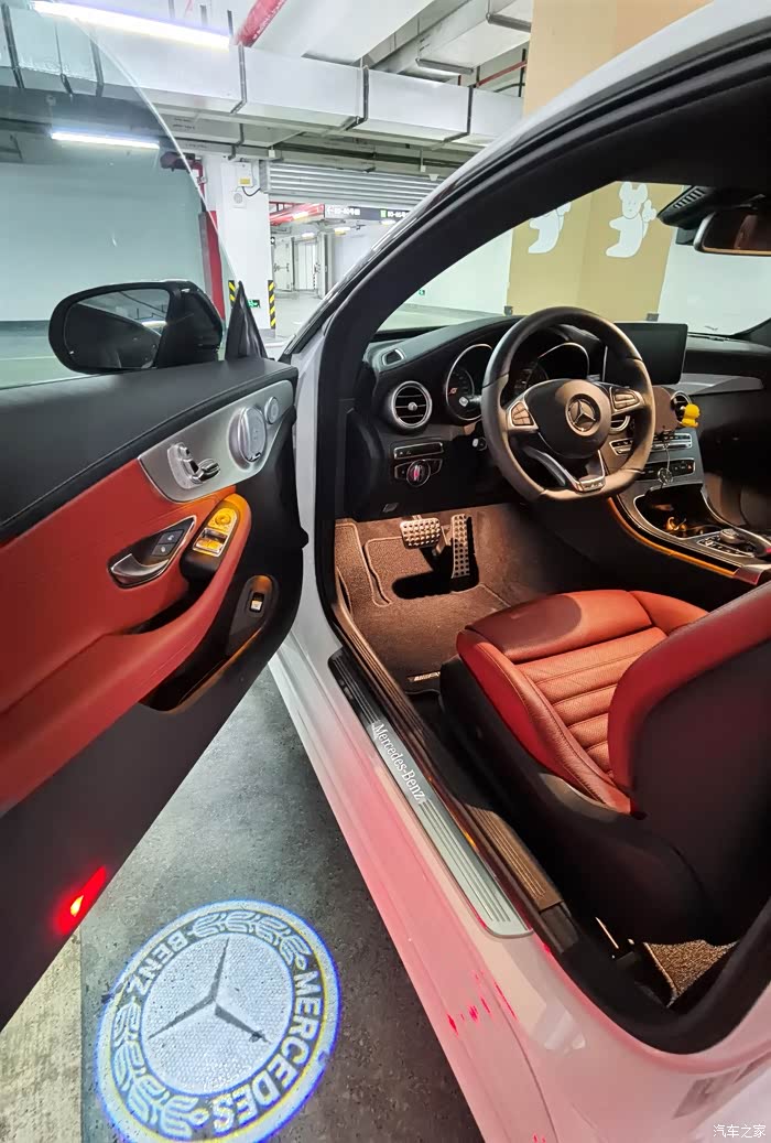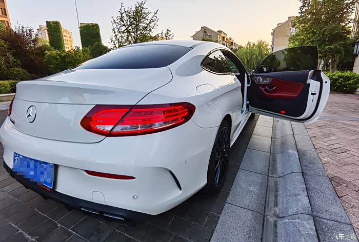 车子2017年6月德国生产,国内第一批2018款 C300 Coupe璨夜版。2017年成都车展上市后深深中毒,为了红色内饰的C300 Coupe璨夜特别版跑遍上海4S,终于找到一台在途车,被QJ了2万装潢下定,等了三个月提车,合同价49.35万元,加上购置税一共近54万。璨夜版标配AMG多幅高光黑轮毂,夜色组件(前唇、中网、车窗饰条都是亮黑色),香氛和空气负离子系统,柏林音响,智能LED车灯,红色Nappa真皮内饰,应该算是C级的顶配了。