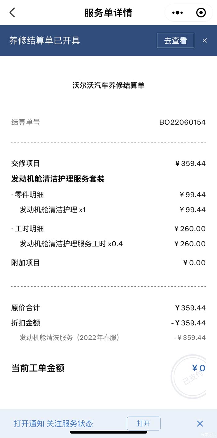 去年春天进行了发动机舱的清洁护理,一年多没清洗过发动机舱了,还是很干净,沃的隔尘技术还是不错的。启动发动机,听一下发动机是否有异响。