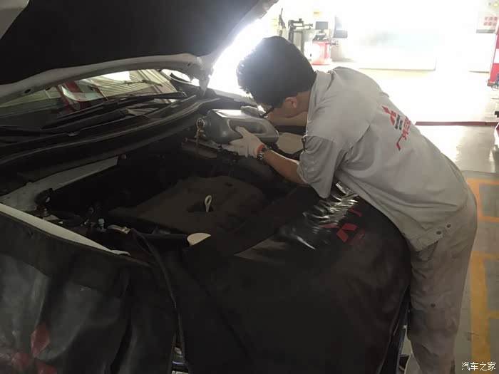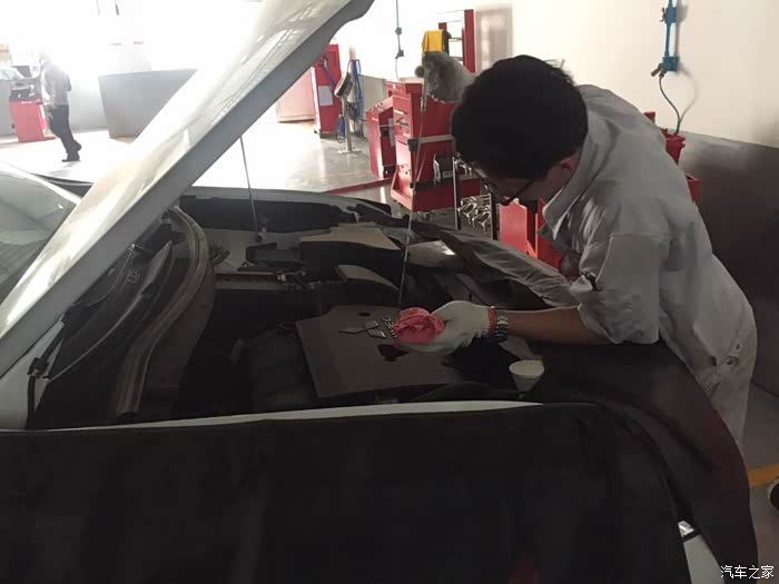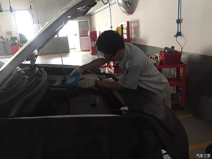 到了车间售后机师就开始忙活起来了,一脸专业正经的样子。首先检查了我的行车电脑,灯光,影音系统,检查了我的胎压,清理了空气滤芯和空调滤芯一切搞定,下来就是更换机油和机滤了。途中售后师傅还为我细心的讲解使用车辆的明细该注意什么让我对自己的爱车有了进一步的认识,全程师傅们都很专业,服务都很到位。这才是真正大店该有的礼仪,总之自己很满意。