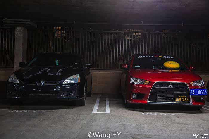 和EVO的合影也是要有的嘛~这俩都是Enkei MAT的轮毂,2门的雅阁比4门的EVO还长差不多20公分