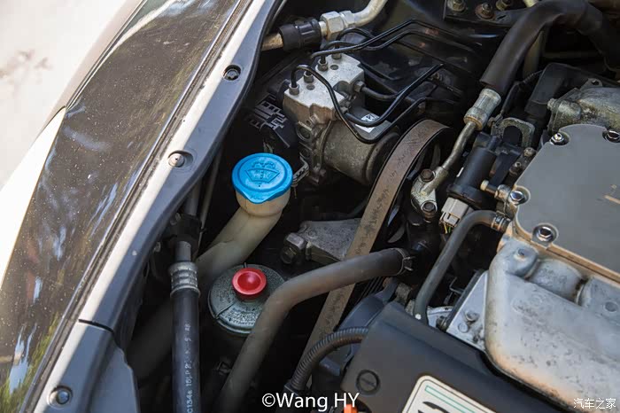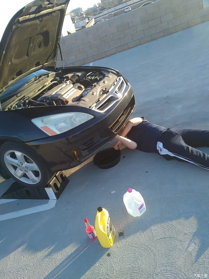 换完机油,那天本来还打算换冷却液的,结果鼓捣了好久都没把散热器的放水螺丝拧下来。无奈就只好放弃了。这张和前一张图,仔细看能看到前悬挂的顶吧,据说是V6手动挡专属的配置