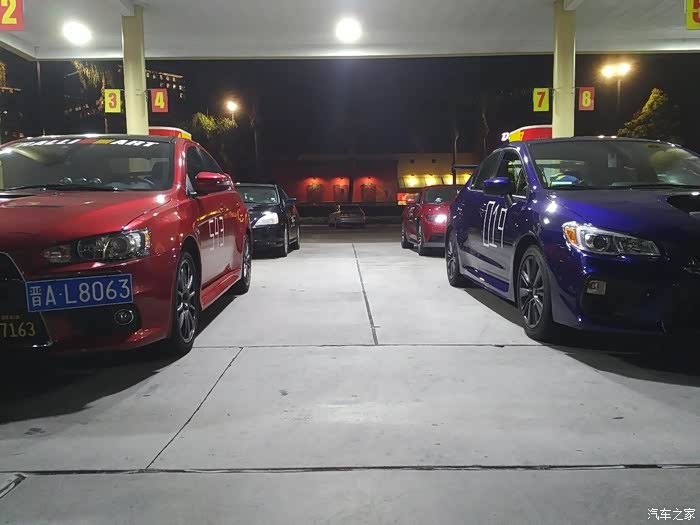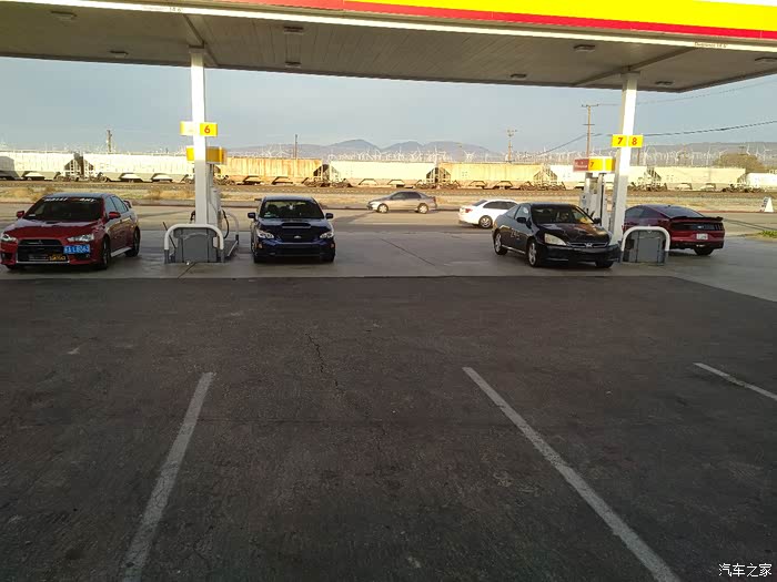 赛道前一晚,出发去赛道附近的宾馆住,这样第二天可以相对起床晚一点,不至于凌晨4点多就出发(赛道要求所有车手在早上7点半之前到场)。这张照片是在我家门口的加油站拍的,2015 Evo X Final Edition, 2018 WRX, 2006 Accord Coupe V6, 2016 Mustang GT。嗯……EVO就是我的EVO