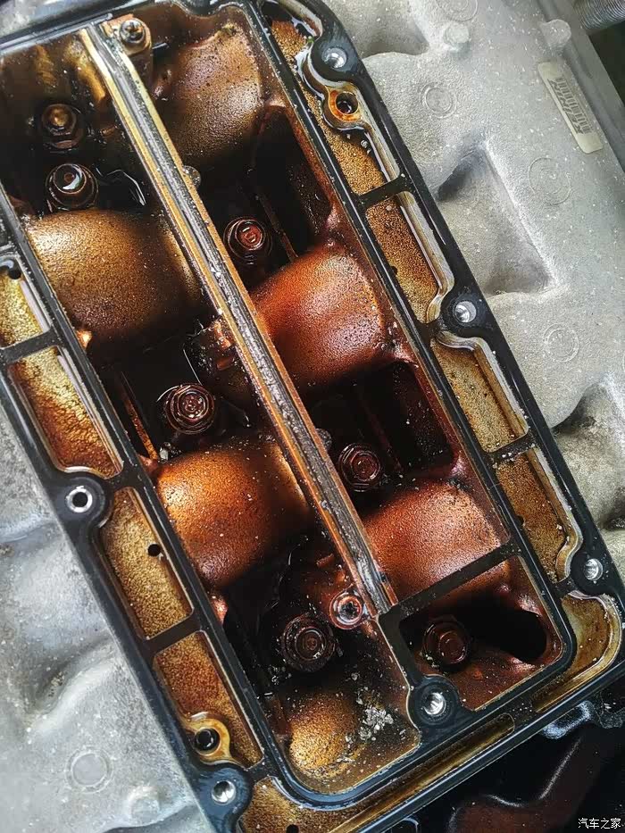 顺利的回家以后就开始了各种换油,当时我闲着无聊把这块盖子拆下来了,这一块算是个简易的油水分离器?给曲轴箱强制通风用的?