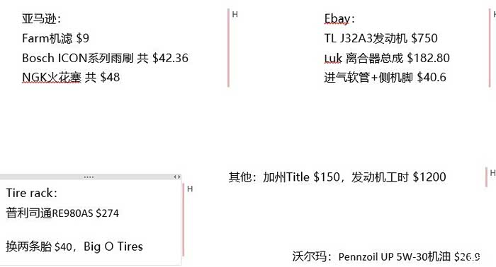 附一张图,这是雅阁到我手上以后几乎所有的修复开支。其实很想自己动手换发动机,无奈开学了实在找不出时间来做……哎