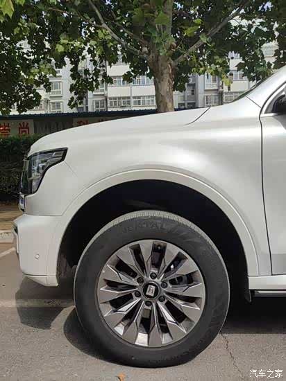 从这台车的侧边造型就能够看得出它的尺寸很大,因为它的离地间距高,这也是能够保证这台车的越野性能的。