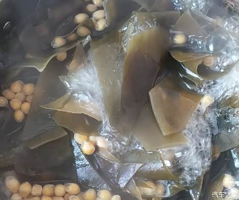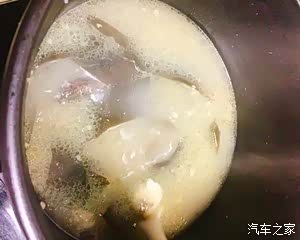 这是2个半小时后 已经把猪头取出来放入备好的海带了 放盐 放羊肚菌