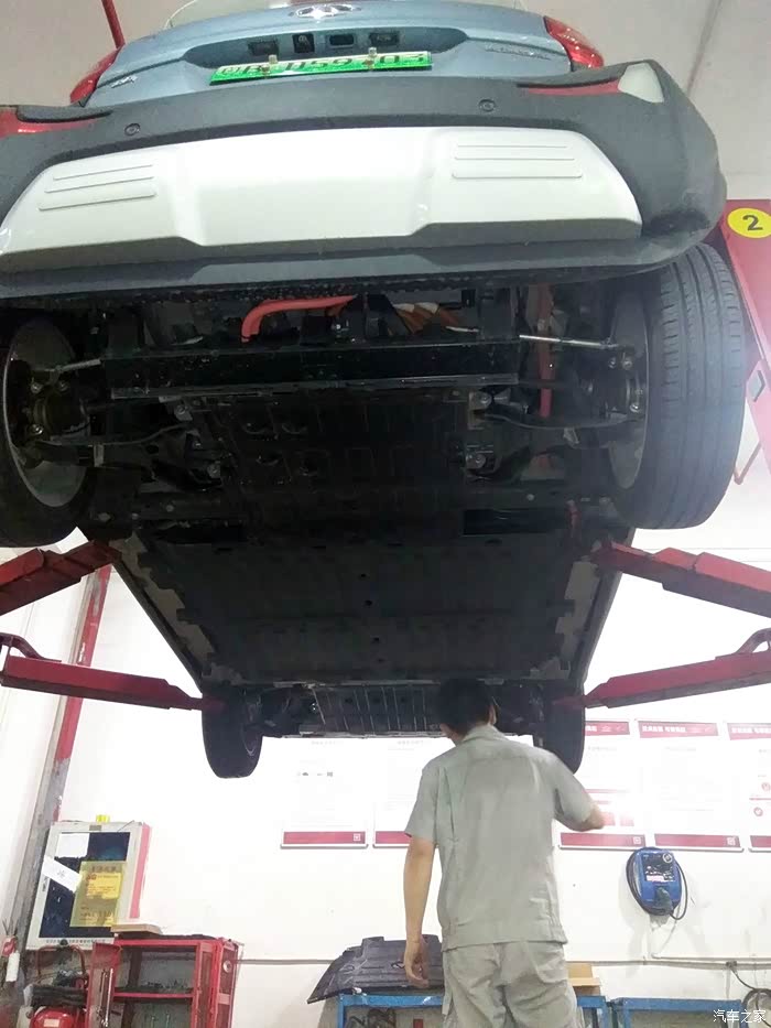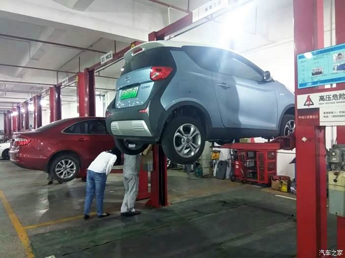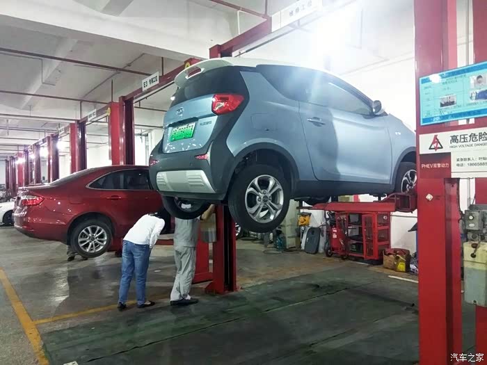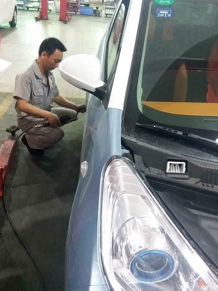 4月28日,行驶917多公里,考虑往返4S店有80多公里的路程,按说明书上的一千公里首保的说法,凑够数了。蓝蚂蚁上了工位,才知道并没有太多的保养项目,就检查一下电路、观察一下底盘、各种设备测试一下、紧螺丝、测胎压,半小时就完事儿了。