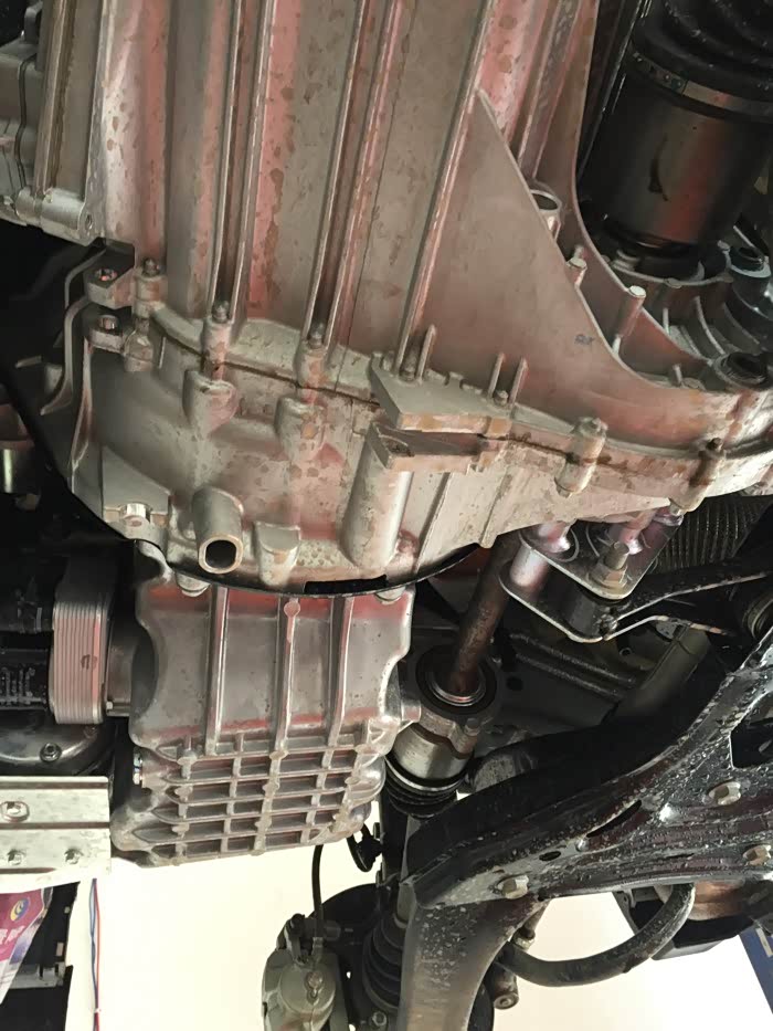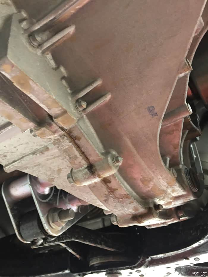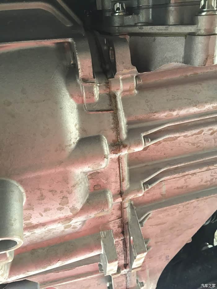 这个是发动机及变速箱部分,有油迹渗出,这个应该是正常,是由于压力过大,机械内部挤压出来的保护油。