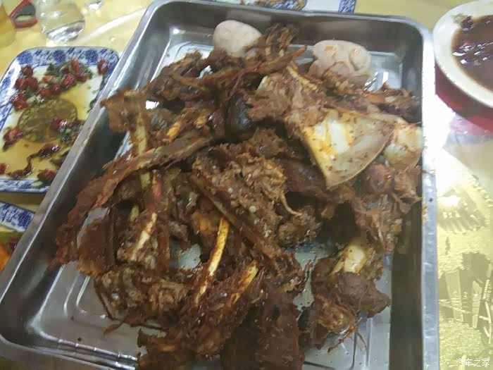 这就是烤了三个多小时的羊肉,有两个硬货 看见了没?