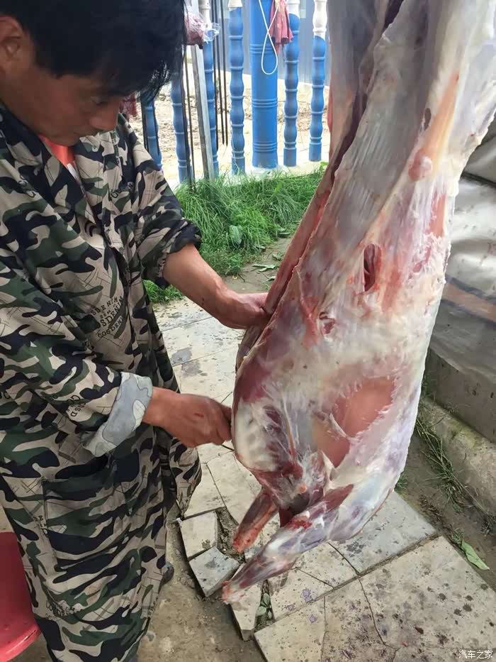 现杀的活羊,这个羊毛重70斤,每斤30元,算下来2100元,老板优惠我们算了2000元整