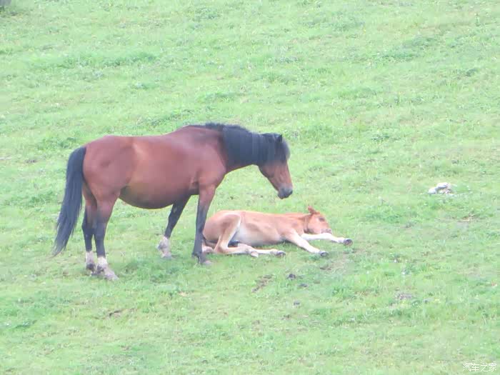 这匹可怜的小马驹是不是病了,老马守护者它,我通过镜头看了它们十多分钟,老马一直这个姿势,纹丝没动。。。。。。