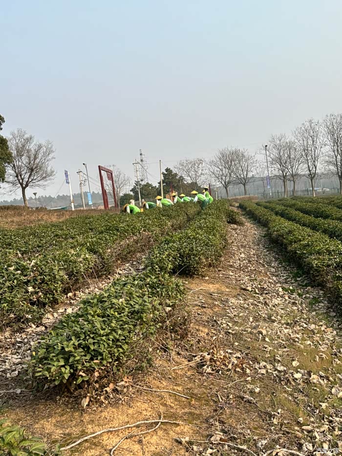 补一些春风十里路上的照片,这是年前去跑的时候拍的照片。这是一片茶树,几个假人在做摘茶叶的场景。