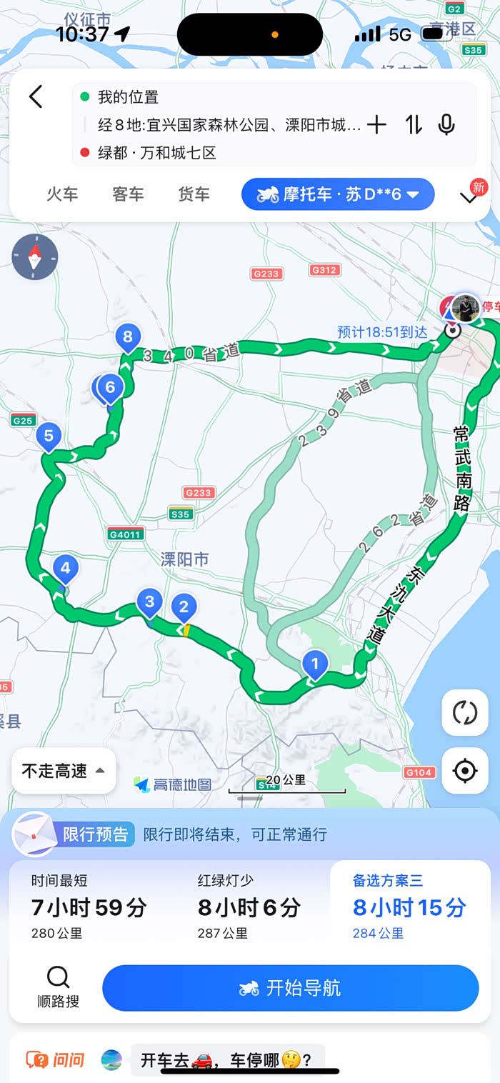 说来惭愧由于内人管的严平时不让我开摩托出去游玩,上下班就6公里骑的太不过瘾了;只能整天遨游在摩友们的出行记录中,心里一直痒痒的。上周四和我爸视频他在老家野外搭一个棚子养鸡鸭的,瞬间一个想法就浮现出来了。假借回家帮忙,可以骑摩托绕一圈回家顺便可以解一解摩托的毒!计划做好了,然后和朋友在群里聊天吹嘘着可以小跑一趟了。静待休息日吧!写到这一大堆废话和摩旅无关的,我也太可怜了🥺。 年轻的时候也没着摩托的道,结婚了突然就着道了,近两年一直很着魔,想着去梦想之地-拉萨,可也只是想想了。最激动的时候,都想着离婚了,太束缚了,我是一个喜欢自由,喜欢玩的人。但我更是父亲、一个丈夫、一个儿子.(全家反对).......没办法,算了。其实已经是很自私了,毕竟我先斩后奏买过两辆摩托了。在此也感谢老婆那么一丝丝的理解吧。那就梦想延后吧,终有一天我要把梦想照进生活。说到底无非就是担心摩托的安全性,老婆是一个比较理性的现实主义者。再加上近十几年的禁摩,在普通老百姓眼里骑摩托车就是一个叛逆、无知等一些不好名词的统称了吧。哎!不过也是的,我们这一个摩旅标志地方,昨天说已经禁摩了——又出事了,后文会描述。