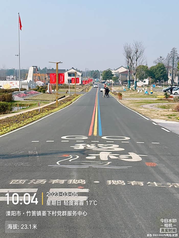 沿着这个村走,又是一个彩虹路,不知道是不是只要柏油路都给印上了彩虹标志了;外地人来了都不知道怎么走环溧阳路线了。