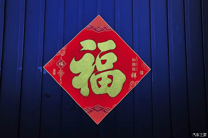 喜庆的福字贴在大门上,为寒冷的冬天增添了浓厚的过年气息