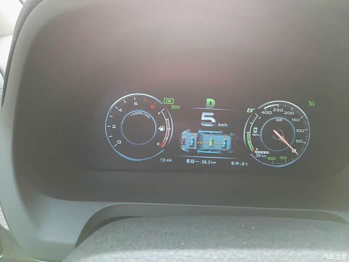 经过40几分钟的昌平拥堵和八达岭高速时速100公里的顺畅,电量掉到50%,此时行驶36.2公里,车子到了德胜门,看来纯电往返的梦想是不可能啦!