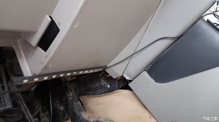 接下来我开始固定副驾驶位置的氛围灯。我仔细观察了一下决定将灯条固定在副驾驶杂物箱的下方。先拿毛巾将杂物箱下面擦干净,把双面胶背面膜揭下。然后我找准位置用力地按压上去。这样副驾驶位的氛围灯也成功地固定好了。