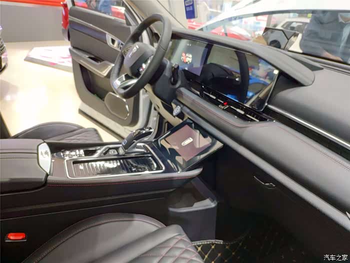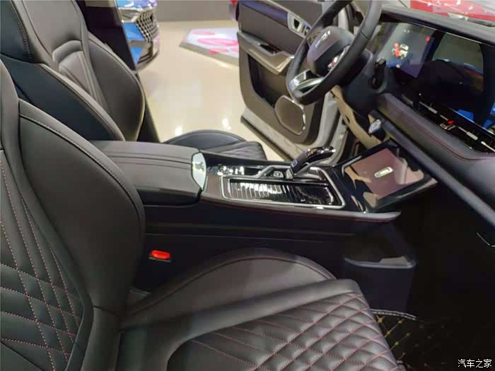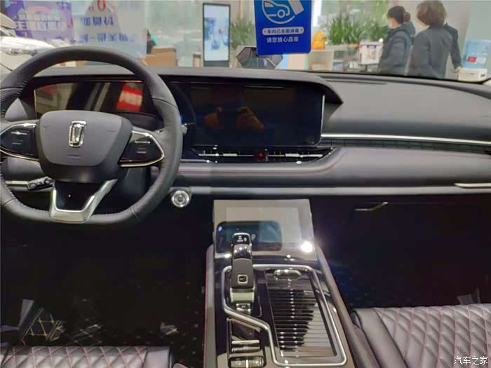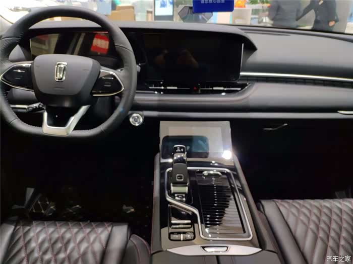 中国品牌汽车内饰很有优势,奔腾T99也是如此,奔腾T99驾驶座舱采用环抱式设计,大面积皮革包裹、双缝线给人以豪华感。三块屏幕整体营造出不错的科技感,两块12.3英寸大屏相连,很大气。