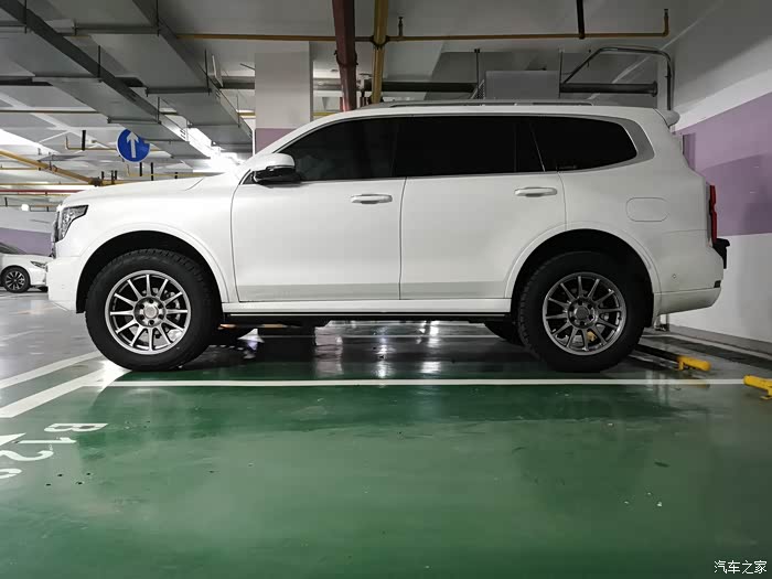 4月的时候,展车到店里了,我立马就带个卷尺去看实车了。经过我的测量推测:如果是原厂+36的ET值,265的胎宽,轮胎直径在850mm以内,不会蹭到前后挡泥板。所以我就规划了要换20轮毂,然后上285 55 R20的胎,这个直径是821.5mm,相比原厂265 55 19升高了23.7mm,相比17的265 65 17升高了22.6mm。把轮毂外凸一点,做+16的ET值。这样就等于把轮距加宽了40mm,增加了稳定性。综合以上算起来应该也在轮拱的范围以内。
