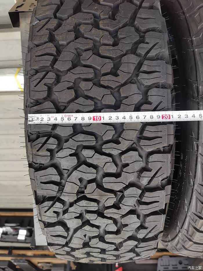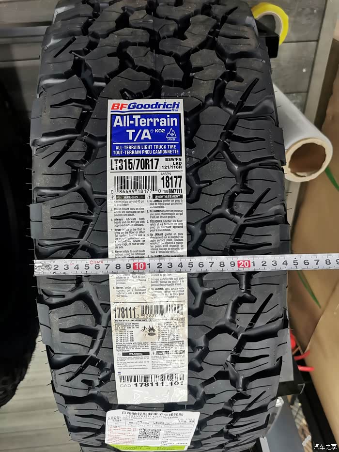 这个是猛禽原厂尺寸,315 70 17的百路驰KO2 ,胎面接地宽度目测也在24cm左右。