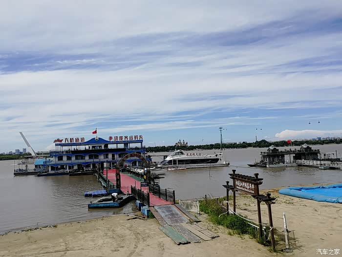 这里是游船的停靠泊位。在这里登船,我们可以欣赏松花江的美丽风光