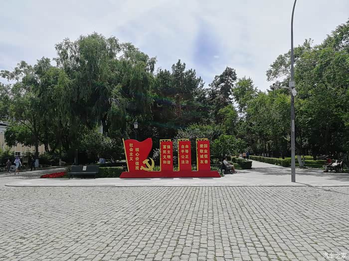 九站公园地面的石头和百年老街———中央大街是一样的,很有历史感。
