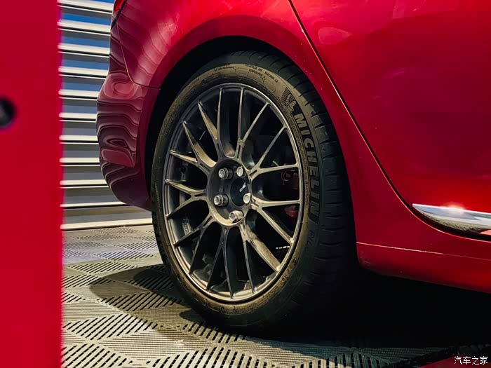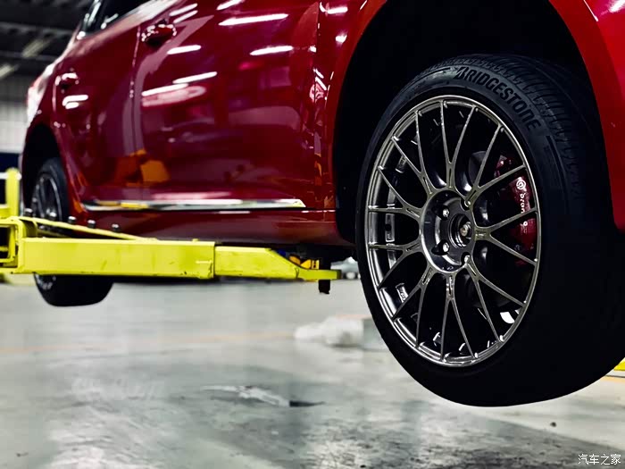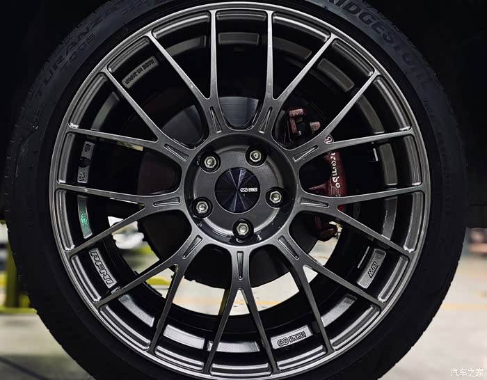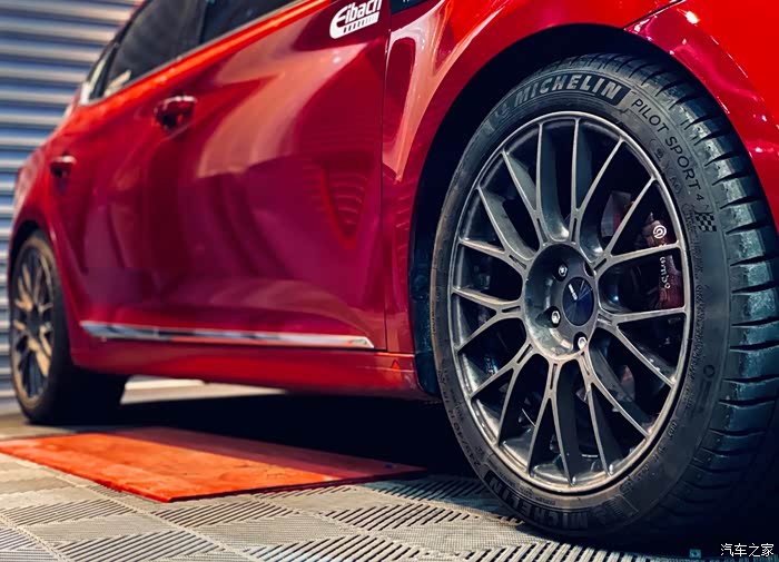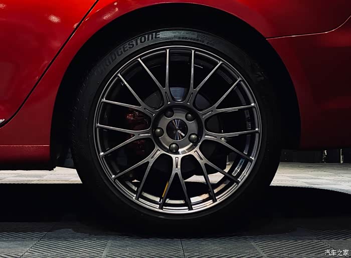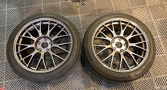 可惜最开始用的是原厂普利司通225/45轮胎,装是可以装,但还留有一点边缘,比较绑。(后面上米其林PS4)