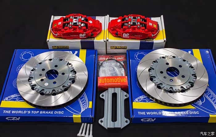 第三阶段开始上刹车卡钳了,还是跟以前一样,考虑了很久,原本经济实力原因,考虑直接上国产TEI,但TEI被曝出虚假宣传和品控问题后就不考虑了。Endless算是高性能刹车的标杆,但严重超出预算,不考虑;萨瓦尼尼品牌颜色选择比较有限,也没有考虑;剩余的就在Brembo和AP中选择,两个都是知名品牌,权衡了一下,就选择了AP系列,毕竟车友会里面好几个都上了AP,口碑还不错,比较适合的是8530和9540二选一,前者体积大视觉好,后者小一号,但多一个加强筋,且制动效果更好,价值先前双十二打折,9540套装包安装费原价13500优惠至12000,正好在预算的边缘,索性自己的基金跟股票的利润正好支撑预算,索性就入手了。