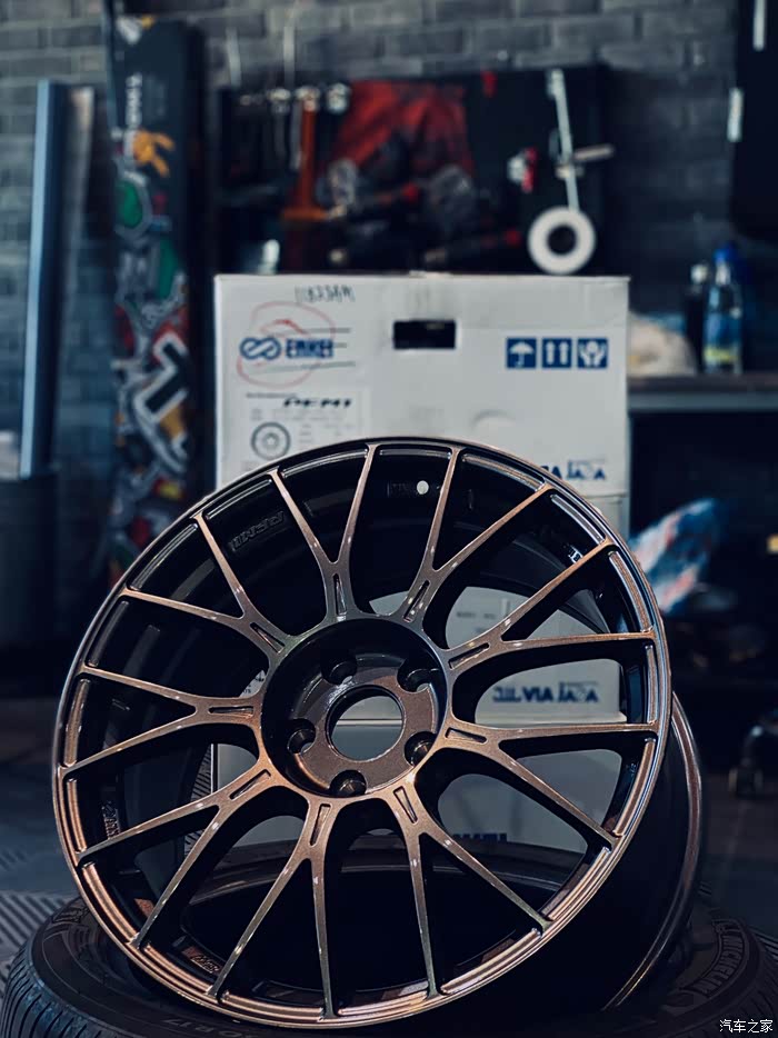 原本我想直接入手OZ或RAYS,但车友会中改OZ和RAYS的人较多,BBS在改装界又烂大街,不想跟风,而高端的BBS又超出预算,后来经过权衡,选择了日本原装的ENKEI 18x8.5 et 45 5x112旋压轮毂。