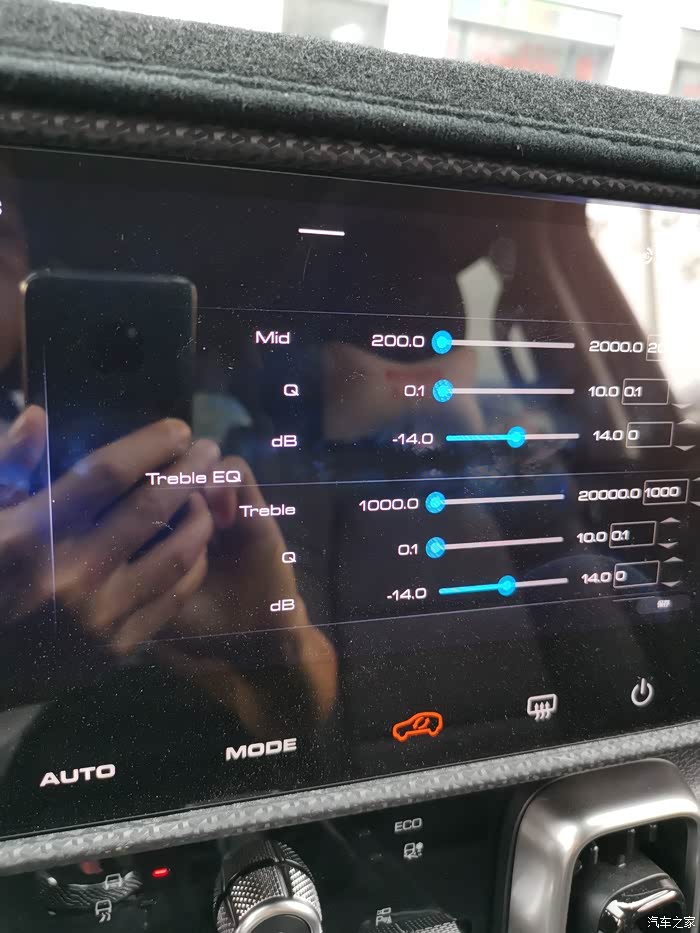 如下图,在工程模式里,我们可以看到默认的三档调节参数,低音默认值是20赫兹(可调范围20到300),中音默认值是300赫兹(可调范围200到2k),高音默认值是1k赫兹(可调范围1k到20k)。