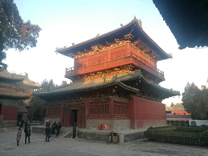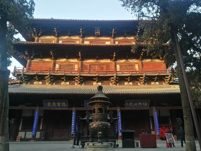 再往前走,两侧各有一阁。右侧这个是慈氏阁,建于北宋,是一座平面为正方形的二层阁楼。元、明、清均有重修。1958年国家拨款进行了重修。
