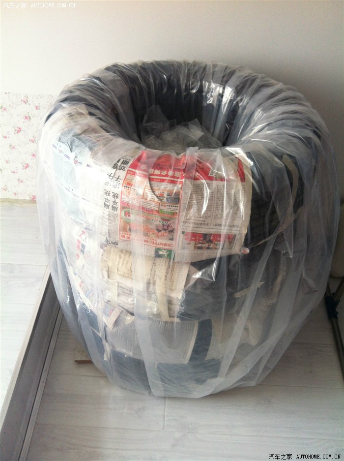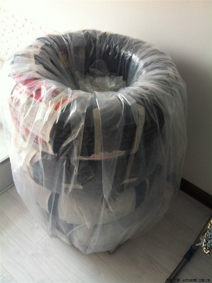 对于有车库的人来说。很简单,但是对于象我这样没有车库的来说。只能把四季胎搬到家里了。可是轮胎的味道实在是有点大。怎么办呢。看我来解决吧,有车库和花钱或免费在外面存放的请无视吧