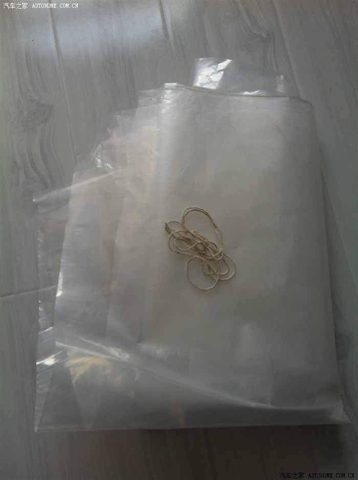 没看错。就是塑料布和一小段绳子,塑料布一般都是双层的。先量下轮胎的周长。我的大约是2米,为了稳妥。我买的是1.5米宽的塑料布,长度嘛。买了2米。