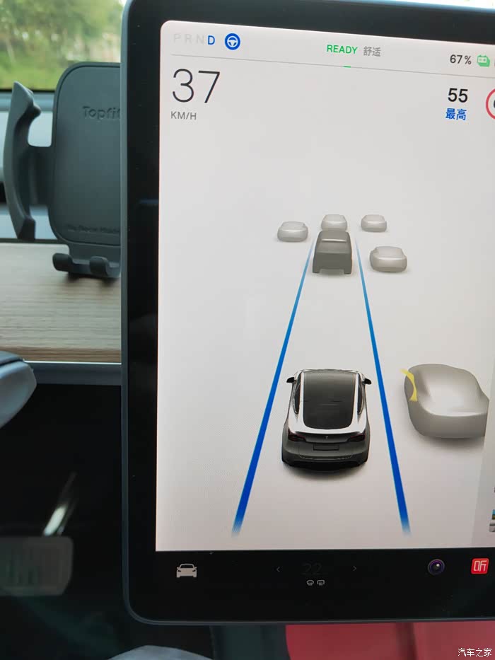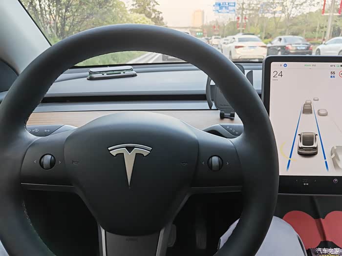 而特斯拉开启车道辅助后,则不会出现这种情况,无论你的手是搭在左侧还是右侧,车始终是在两条线的中间。如果靠打方向解除车道保持,需要用稍微大一点的劲儿。