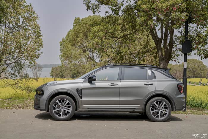 车身线条流畅,配上19英寸的轮毂,整体离地间隙相当高,能保障很好的郊区出游的通过性,就像我们通过的这条乡间小路,过来的路上坎儿不少,好多家轿都是直接拦在外面了,完全没法子过来,这就是可城可野的领克01的优势所在了,通过性杠杠滴,应付日常家用轻轻松松。