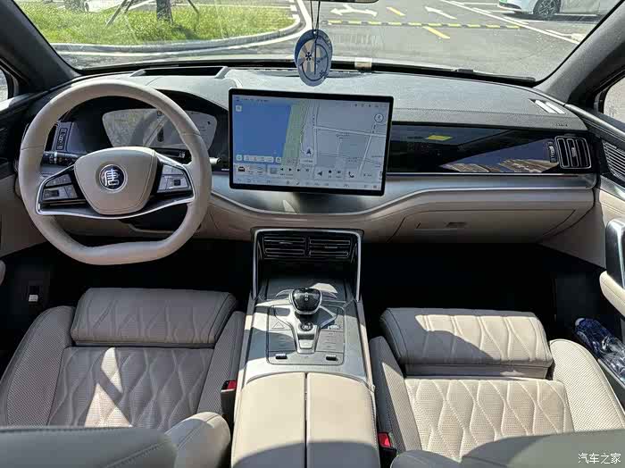 早上6点天还没全亮,我把行李丢进后备箱(这车空间真没得说,两个大背包+一箱水还剩很多空位)。提前用手机APP远程启动空调,设定22℃——上车时车里已经像开了暖气的客厅,完全不用忍受冰冷座椅。座椅通风+按摩也一并打开,长途最怕腰背僵硬,Nappa真皮的支撑感确实到位。