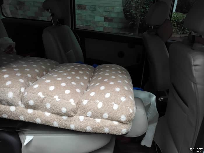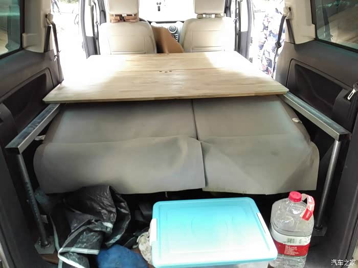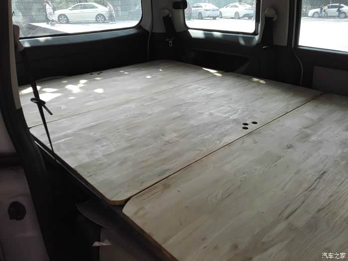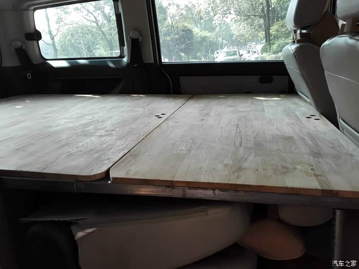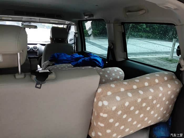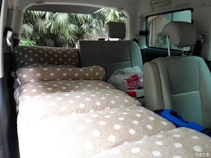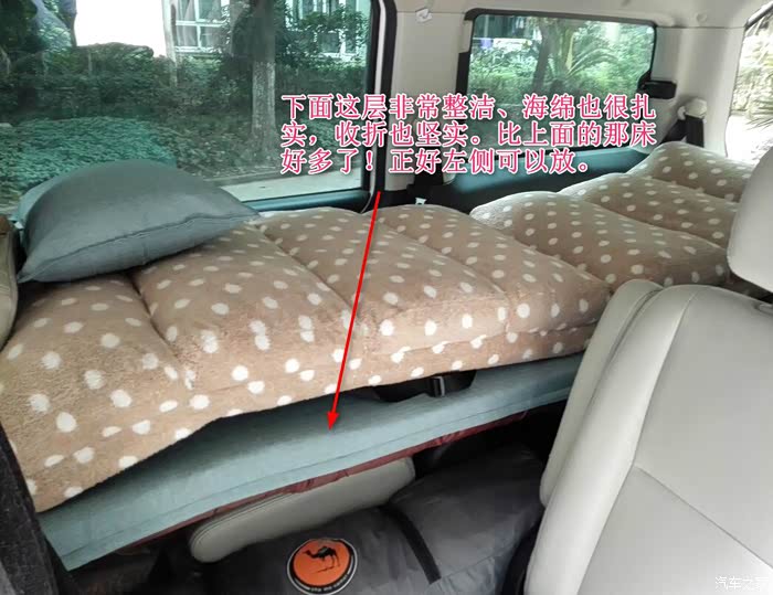 这是我的,双层,如果要睡两人就要把另一侧的座位放倒,左右各放一张床,中间的空间可以放点杂物。这样平时睡一个人,开车累了,进服务区就可以睡,不用花时间充气什么的,睡上10分钟再走,精神百倍。