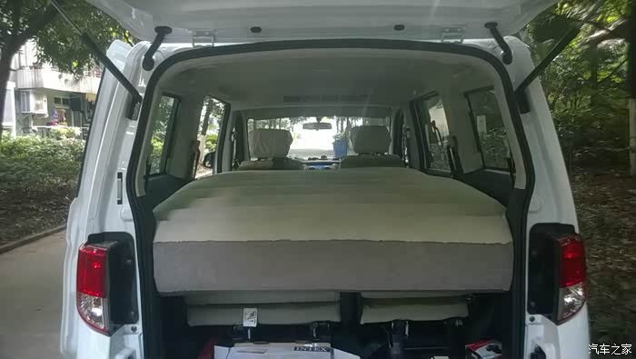 他的车不是欧诺,但算一类车,不谋而合呀,居然他也买得有!^o^当然,如果常住两人、常载4人以内,买两床,像我那样重叠起来放一边也很方便。