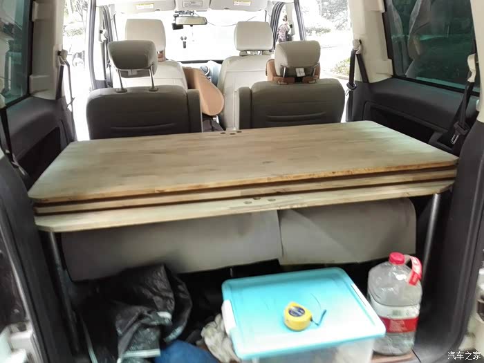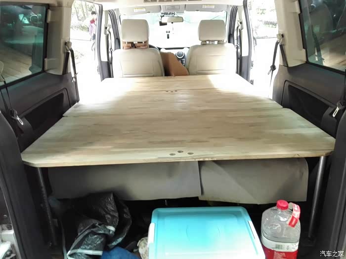 第三种方案并不适用于平时代步,放床板需要放倒第三排(三块重叠在一起),这样第一、二排只能总共乘坐4人,比较适合于远游。远游人不能坐太多,第三排放下床板(三块重叠在一起)后,板下的空隙处可以放一些旅行物资,比如卡式炉、饮水、睡袋等。如果只是平时代步,这些东西还是不放车上为妙。