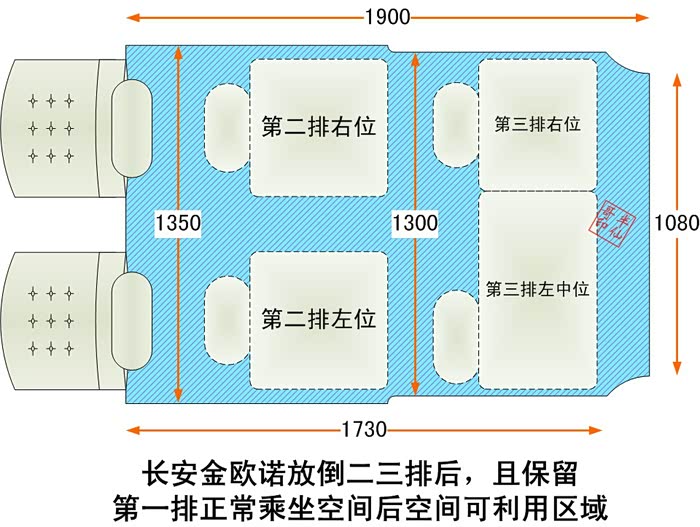 金欧诺车内放倒二、三排后,且保留第一排正副驾驶位正常乘坐的空间时,剩余的进深长度为1.73-1.90米之间。好奇怪不是一个固定值?之所以是变化的,是因为车尾空间并不是一个完全水平的。